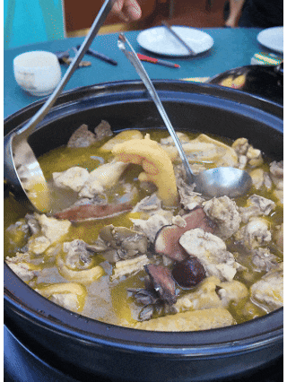 在吃鸡这件事情上,广东人是专业的!这不,近日就有吃货网友发现了中堂的“莫氏鸡煲”。在中堂蕉利村的溢桦隆饭店,因其瓦缸荔枝木烧鹅这一“地标美食”而名声在外,该店负责人莫志坚(莫老爷)深耕烧腊研发制作数十年。是广东省四星级“粤菜师傅”名厨、资深烧腊专家。该店除了瓦罐荔枝木烧鹅、黑金松露鲍鱼烧鹅、烧鹅酸辣粉等烧鹅系列,还有玻璃脆皮烧肉、脆皮乳鸽、红烧乳鸽等烧腊都是镇店名菜。尤其是,最近火“出圈”的药膳鸡煲,在该店也是深受消费者喜爱。